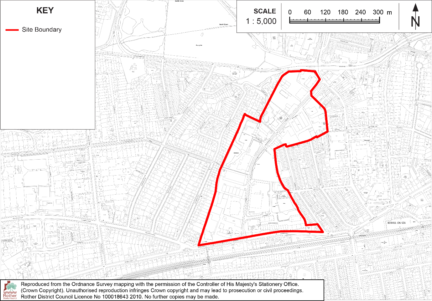 In planning for the future of Bexhill, we’ve made a distinction between central urban areas and suburban areas. The Bexhill Urban Area has been identified as an area within reasonable walking distance of Bexhill mainline railway station and the services and facilities within Bexhill Town Centre. It includes the designated Town Centre and Primary Shopping Area, as well as the Beeching Road business area (see Policy BX4) and some key brownfield sites for redevelopment, identified by separate site allocation policies in this chapter.