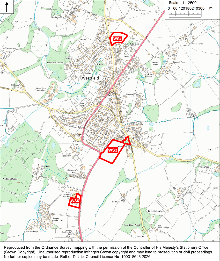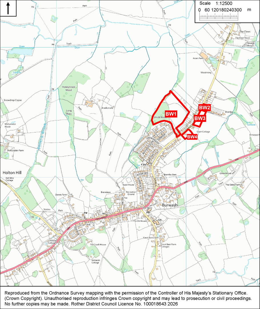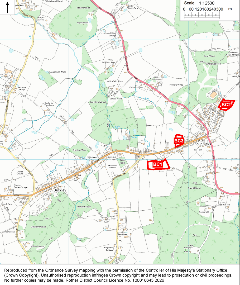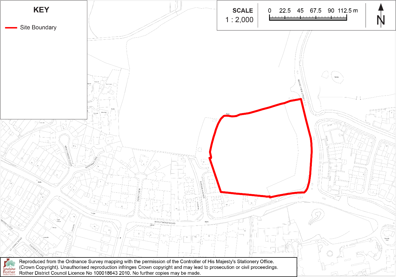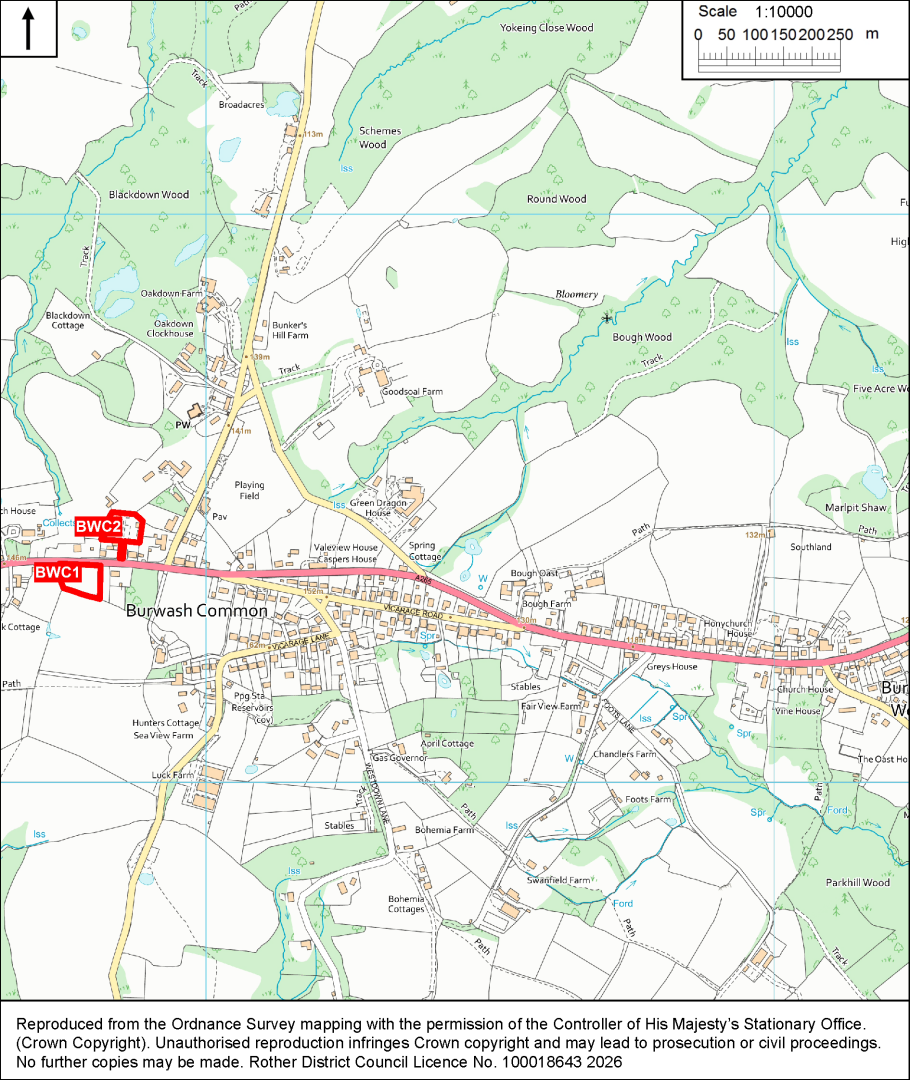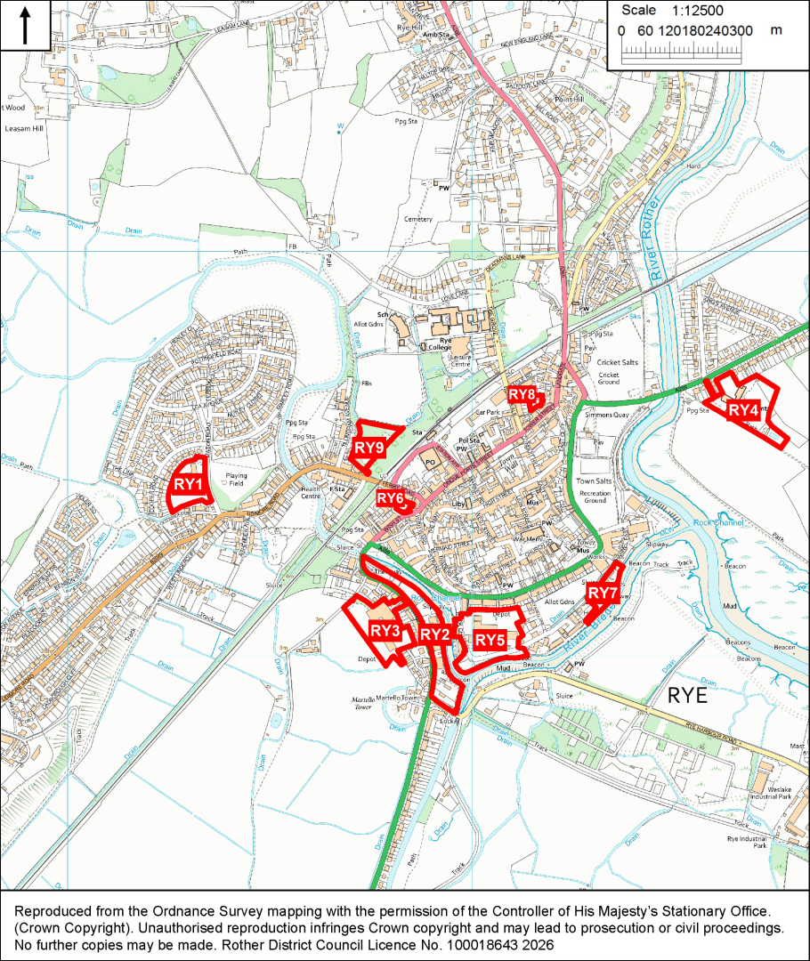 Reproduced from the Ordnance Survey mapping with the permission of the Controller of His Majesty’s Stationary Office. (Crown Copyright). Unauthorised reproduction infringes Crown copyright and may lead to prosecution or civil proceedings. No further copies may be made. Rother District Council Licence No. 100018643 2025