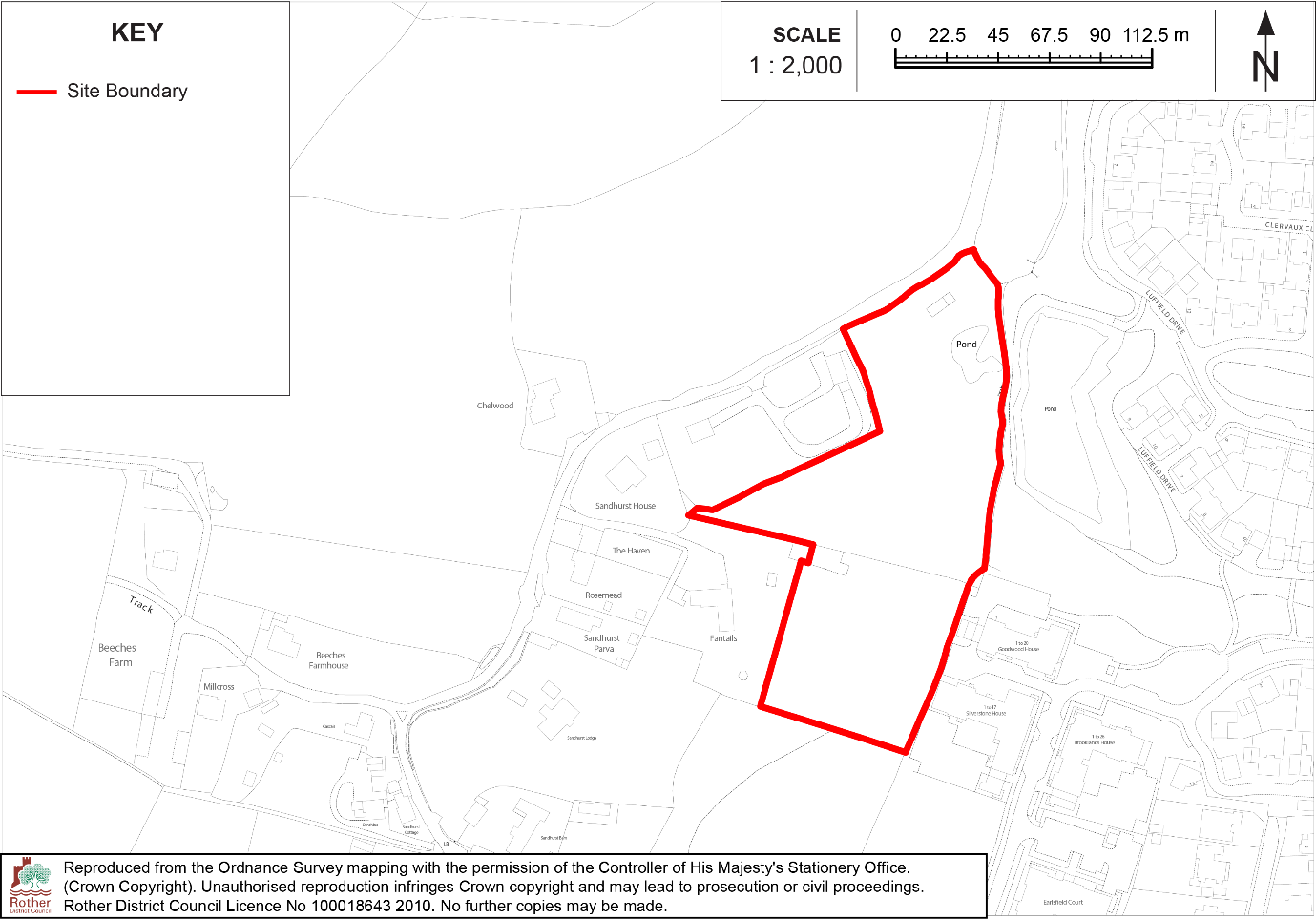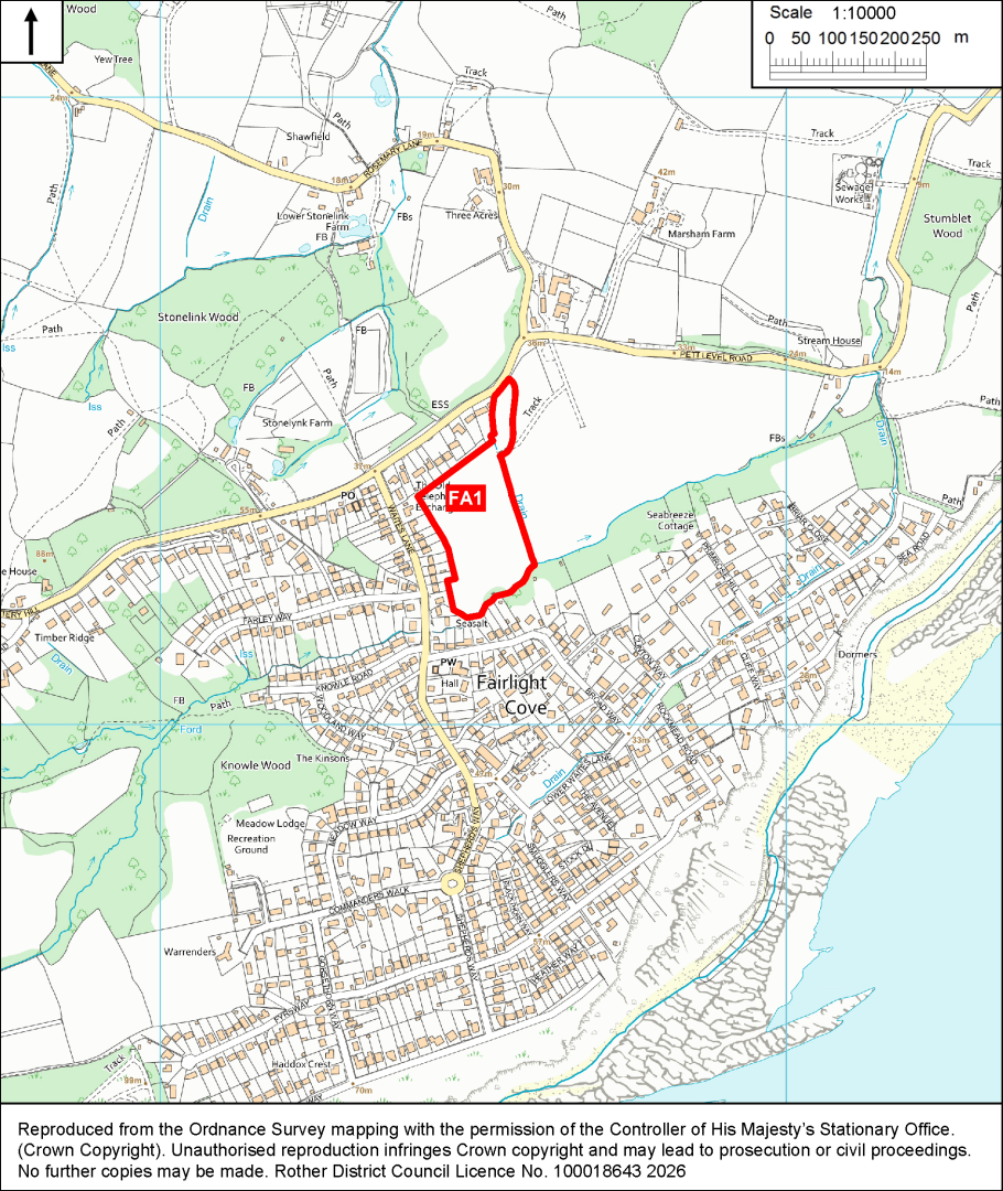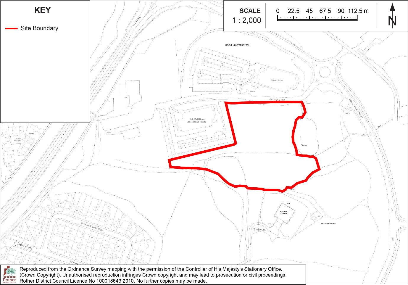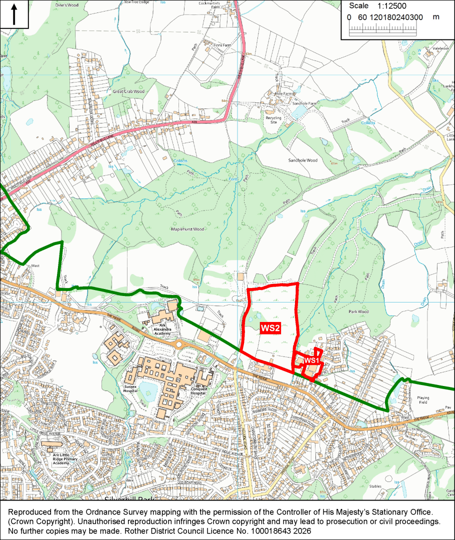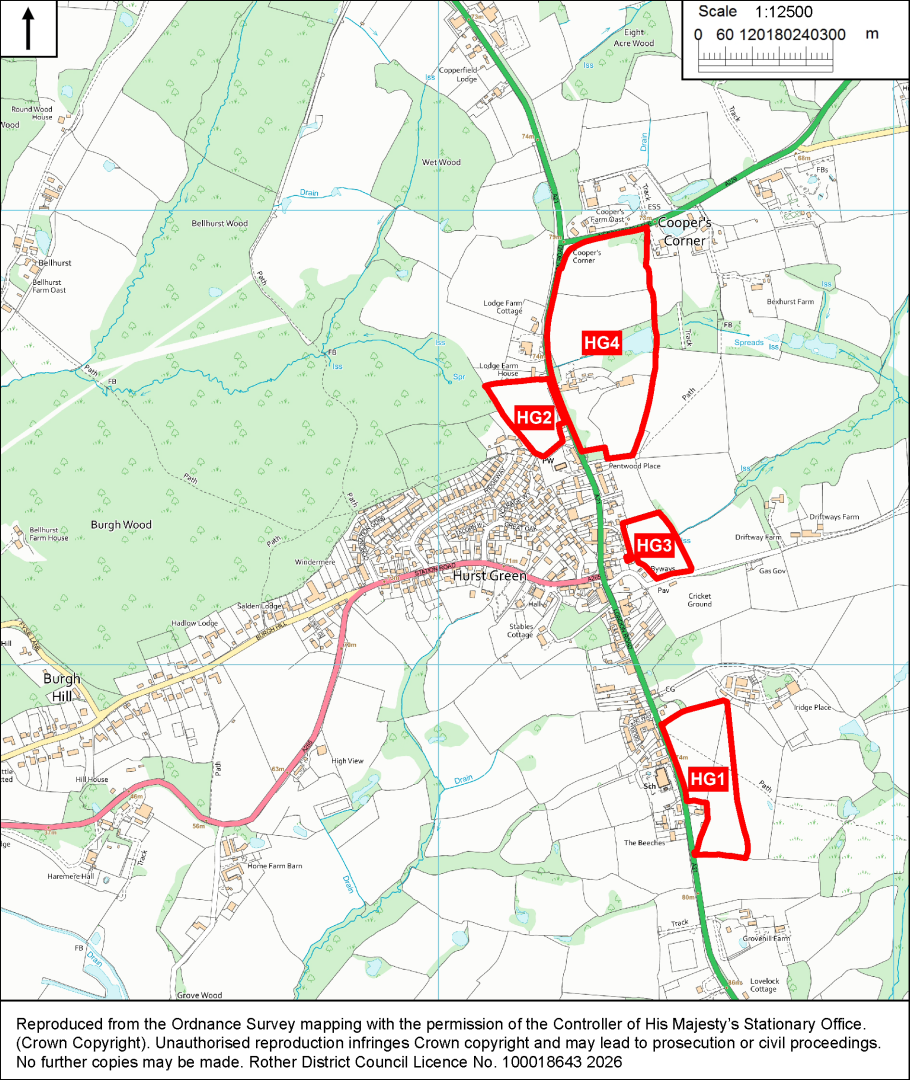 Reproduced from the Ordnance Survey mapping with the permission of the Controller of His Majesty’s Stationary Office. (Crown Copyright). Unauthorised reproduction infringes Crown copyright and may lead to prosecution or civil proceedings. No further copies may be made. Rother District Council Licence No. 100018643 2025