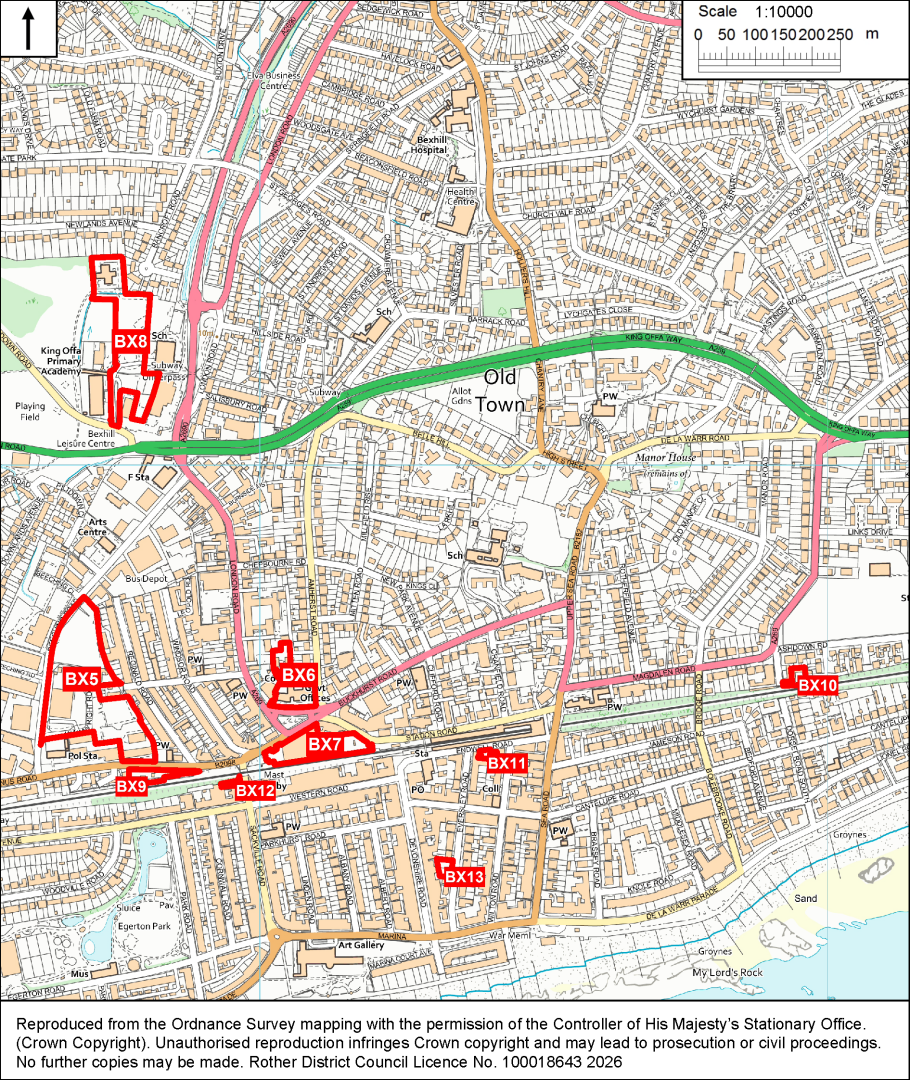 The Area adjoins the Cultural Area (Policy BX2) and the Beeching Road Enhancement Area (Policy BX4) and lies within the Bexhill Urban Area (Policy BX1), as well as adjoining some key brownfield sites allocated for redevelopment. It is intended that all these policies work together to complement each other and secure improvements and appropriate new development in this central area of Bexhill.